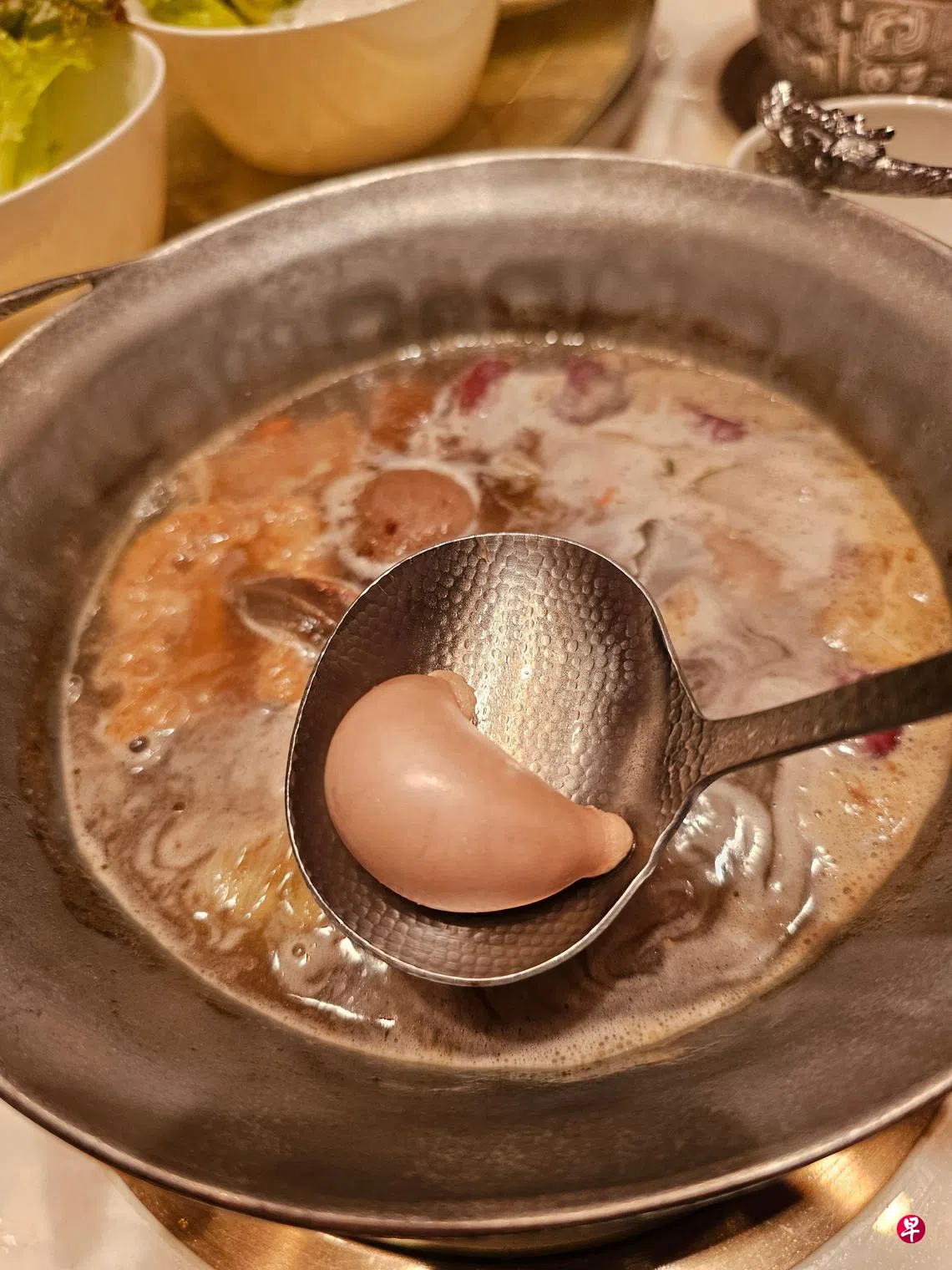 近期比较难忘的是鸡子,这是鸡的睾丸,大小如板栗。广东人吃火锅时,鸡子是配料之一。不久前,到名厨江振诚于永利澳门的“尚汤·江振诚主理”餐馆吃火锅,除了海鲜和肉类,服务员还端出了一盘鸡子。同桌其他饭友看了后都婉拒,我本来也有些犹豫,但在餐馆大力推荐下还是决定一试。