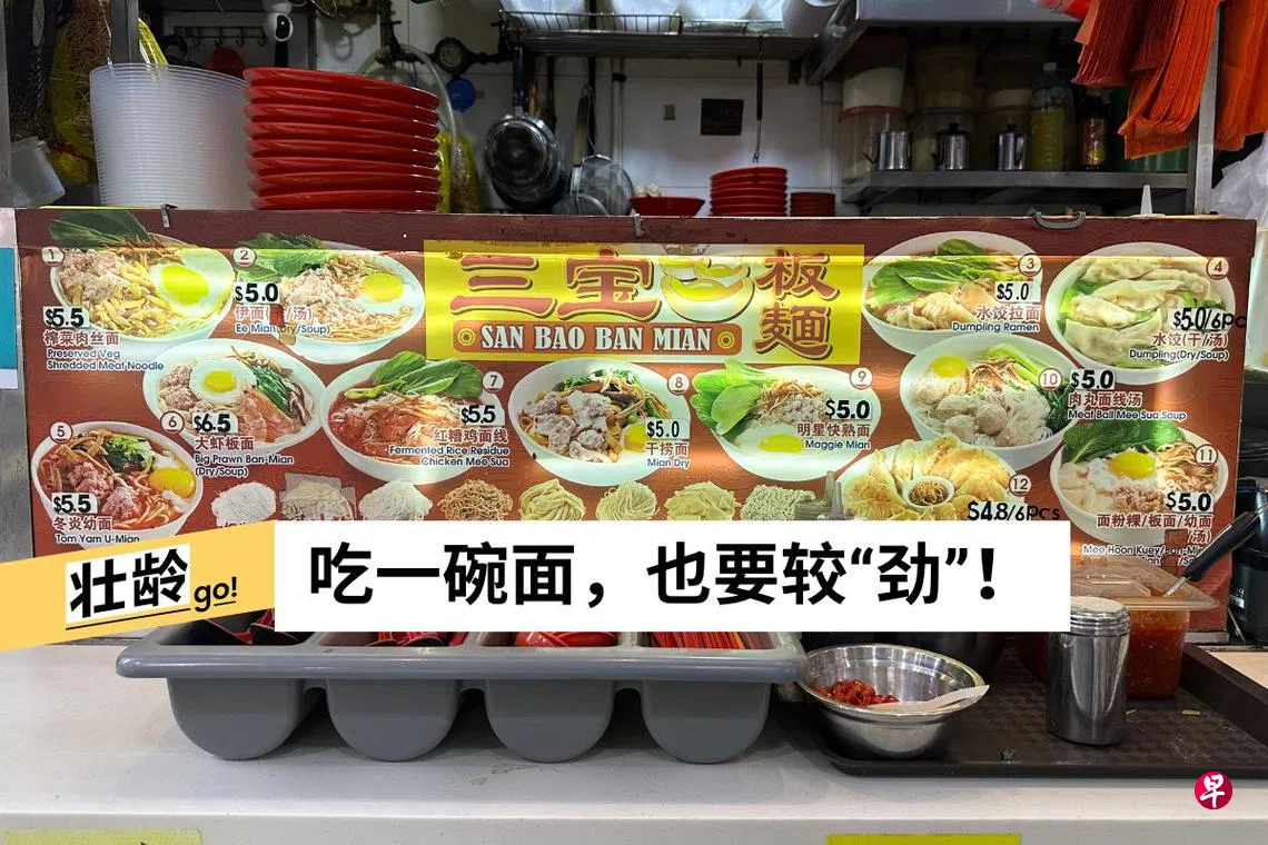面摊由一对来自福州、已落户新加坡多年的夫妻经营,取名“三宝”是因为客人、工人和档口,都是两夫妻的心中宝。他们经营这个面摊已有18年,采访的时候是下午3点,客人陆续上门堂食或外带,有老有少,从20岁到60岁都爱吃,有些还是专程来寻味的。
