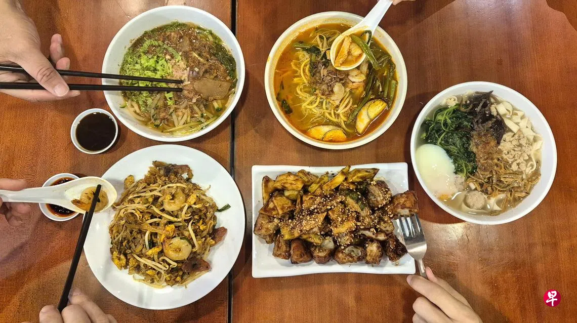 面饭类米其林推荐的是亚参叻沙($10),记者倒是比较喜欢炒粿条($10),虾只鲜美,也有腊肠油脂和咸香。另有虾米面汤($10)、鸭腿面线($13.50)和海鲜面线糊($12)等。