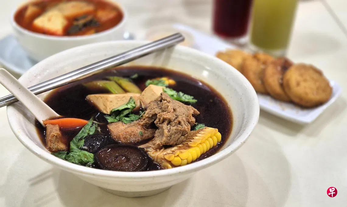 擂茶是招牌料理($10.50),绿汤有浓浓香草味,还加了腰果和炸芋丝增添口感和坚果香。肉骨茶汤($9)带淡淡药材香,除了主角素肉块,还有玉米和红萝卜块,可搭配米饭、米粉、粿条或面线。也可选味道较有层次的叻沙($9)和素亚参鱼($9)。