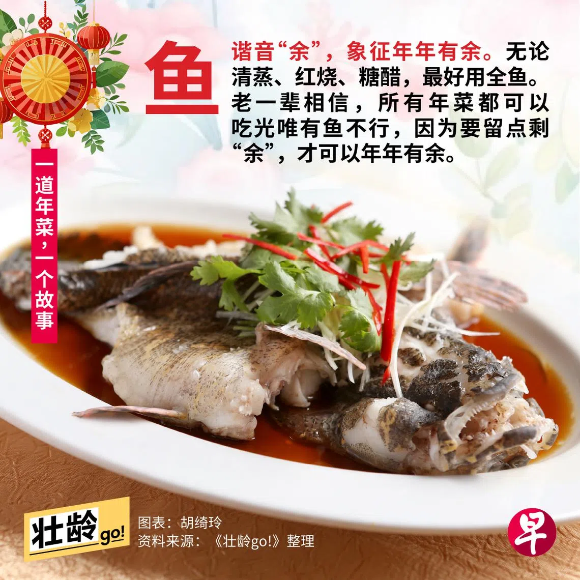 老一辈人相信,过年吃鸡要吃全鸡,代表有头有尾,保佑全家大小平安,一起迎新送旧。过年吃鱼也讲究吃整尾鱼,寓意年年有余,一年当中,日子富足有余。