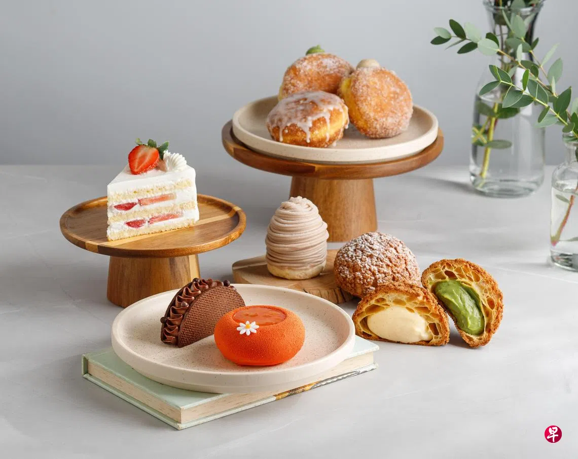 招牌之一是芋泥挞($7),即结合了传统芋泥甜点与法式甜点Mont Blanc栗子挞的芋泥版。它以轻脆的蛋白霜为底,上面铺了浓郁的莓子果泥和鲜奶油,顶部是一圈圈顺滑芋泥。莓子果泥与芋泥的搭配比想象中理想。冲绳朗姆酒巧克力($8),结合了黑巧克力、日本朗姆酒和榛果的多层风味,包裹在咸香牛油饼干外层中,酥酥脆脆的口感丰富讨喜。最经典的是日式草莓蛋糕($10)。新鲜草莓夹在蓬松的鲜奶油和口感轻盈的香草海绵蛋糕之间,每一口都充满草莓与蛋糕的清爽香气,也让这款蛋糕吃起来较没有负担。