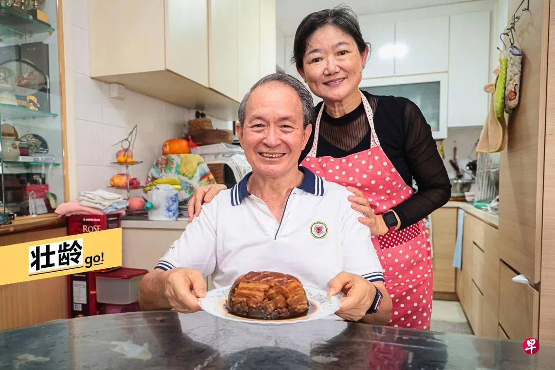 当上公公婆婆后,每个周末都是王国平张亚凤最期待的家庭日。早上,夫妻俩先到市场采买新鲜食材,之后,会在厨房里忙碌一整天,只为了准备一桌丰盛的客家菜。