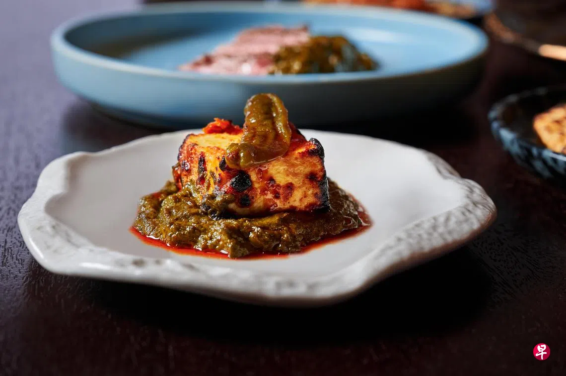 开胃菜是空运自新德里的干酪(paneer),经过烤制后配上辣番茄酱和葫芦巴酱,风味更多元。