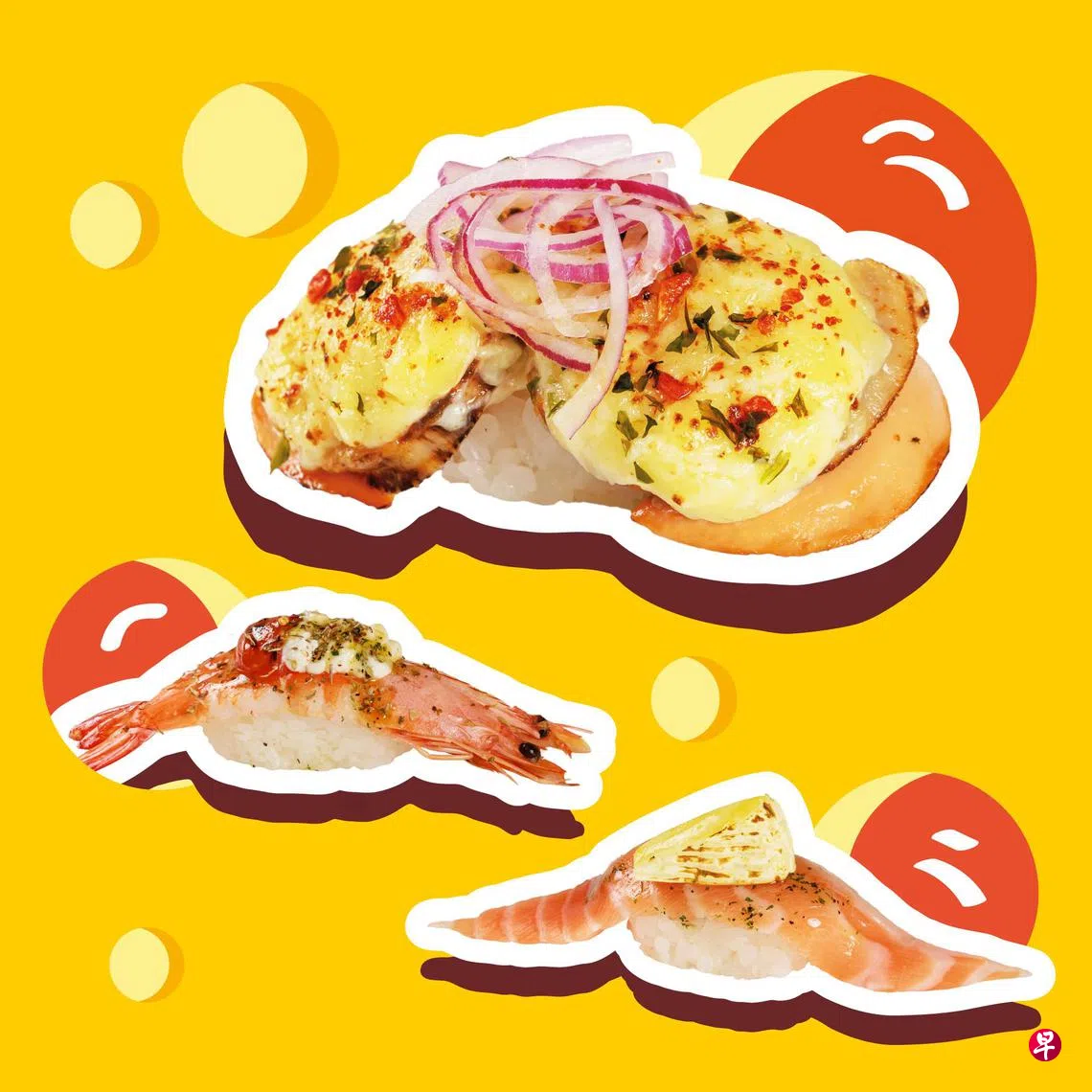 特别推出的三款新品寿司结合东西方口味,灵感源自杰瑞对奶酪的热爱。烟熏卡门贝尔奶酪三文鱼($3++)是经典三文鱼寿司升级版,炙烧三文鱼搭配浓郁北海道卡门贝尔奶酪,香气四溢;玛格丽特奶酪虾寿司($3++)创意灵感来自意大利玛格丽特披萨,熟虾配奶酪与番茄酱,甜中带咸;卡邦尼奶酪扇贝($3.50++),鲜嫩扇贝搭配奶酪与卡邦尼酱,炙烧至金黄,奶香四溢。