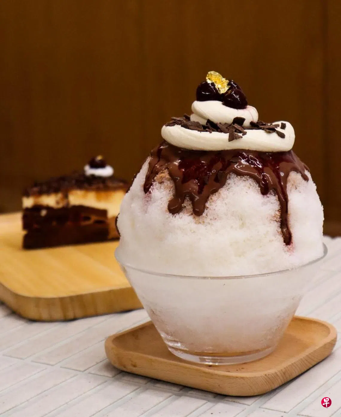 除了可尝到五款畅销冰品,还有一款狮城独家冰品,即招牌黑森林刨冰($19.80)。这款刨冰以咖啡馆Drips Bakery Cafe的招牌黑森林蛋糕为灵感,刨冰配有白兰地樱桃、巧克力酱、奶油芝士、茶焦糖酱和桂皮碎饼,并附上樱桃白兰地利口酒,能随意淋上搭配。其他口味推荐经典草莓蛋糕刨冰($17.50),有草莓、草莓酱及牛奶酱,微酸的草莓香气,让刨冰甜而不腻。