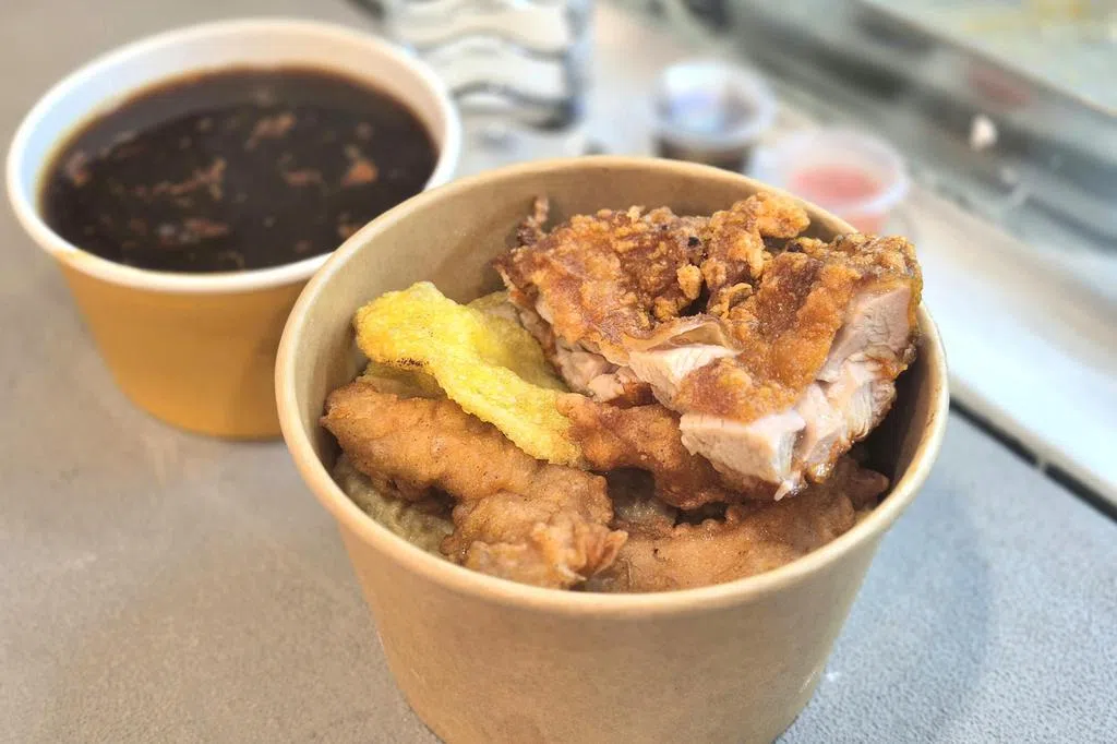 椰桨饭可选虾酱鸡中翅、午餐肉、仁当鸡腿或乌达。仁当鸡腿($13.90)入味又软烂,椰浆饭也很香。也喜欢药材鸡汤配白饭($10.90)和参峇酱炒虾与臭豆饭($10.90)。