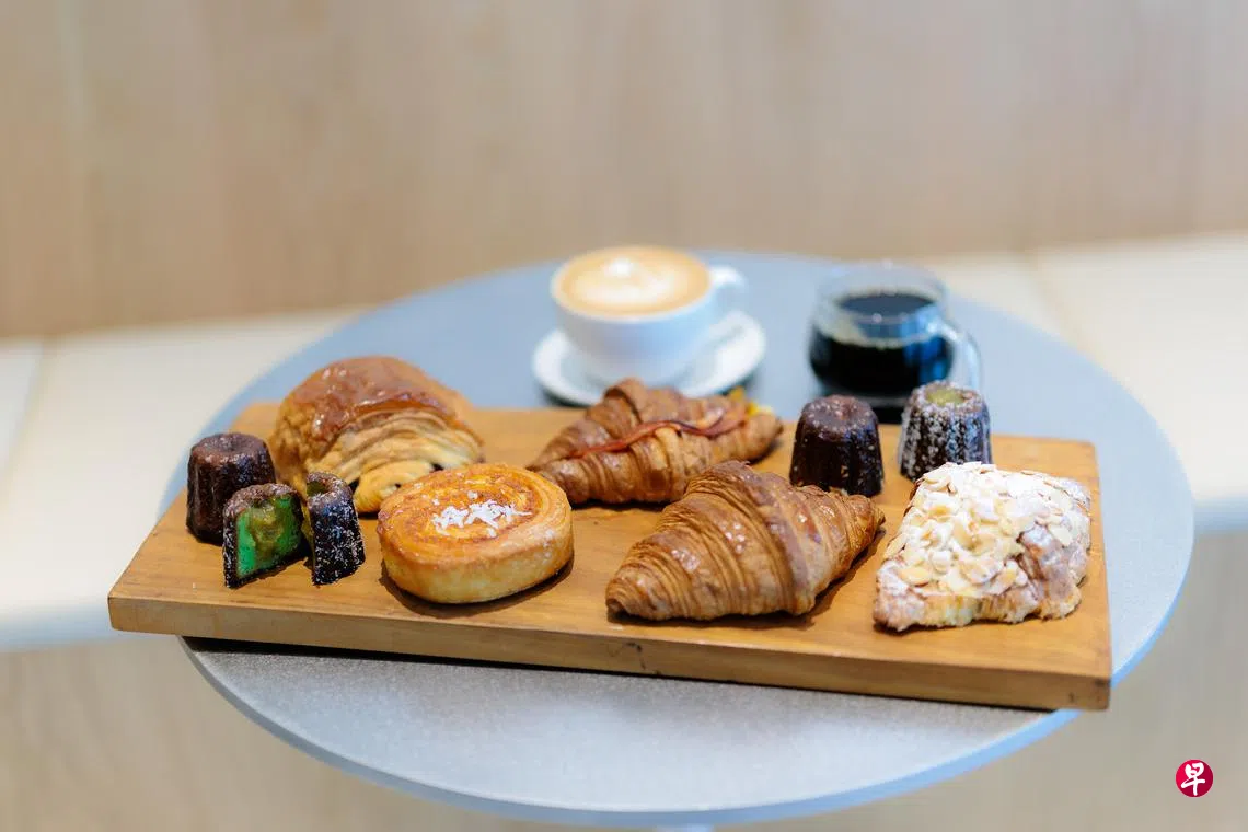 糕点方面,有经典杏仁可颂面包($8)等,也有为新加坡分店独家烘制的椰子口味法式焦糖奶油酥(kouign amann,$8)和班兰咖椰“可丽露”(canele, $6)。这两款新加坡创意版本各有美味,奶油酥脆口,带有椰香;可露丽外壳有微微脆皮感,内部具湿润度,法式甜点多了东南亚风味,相当特别。