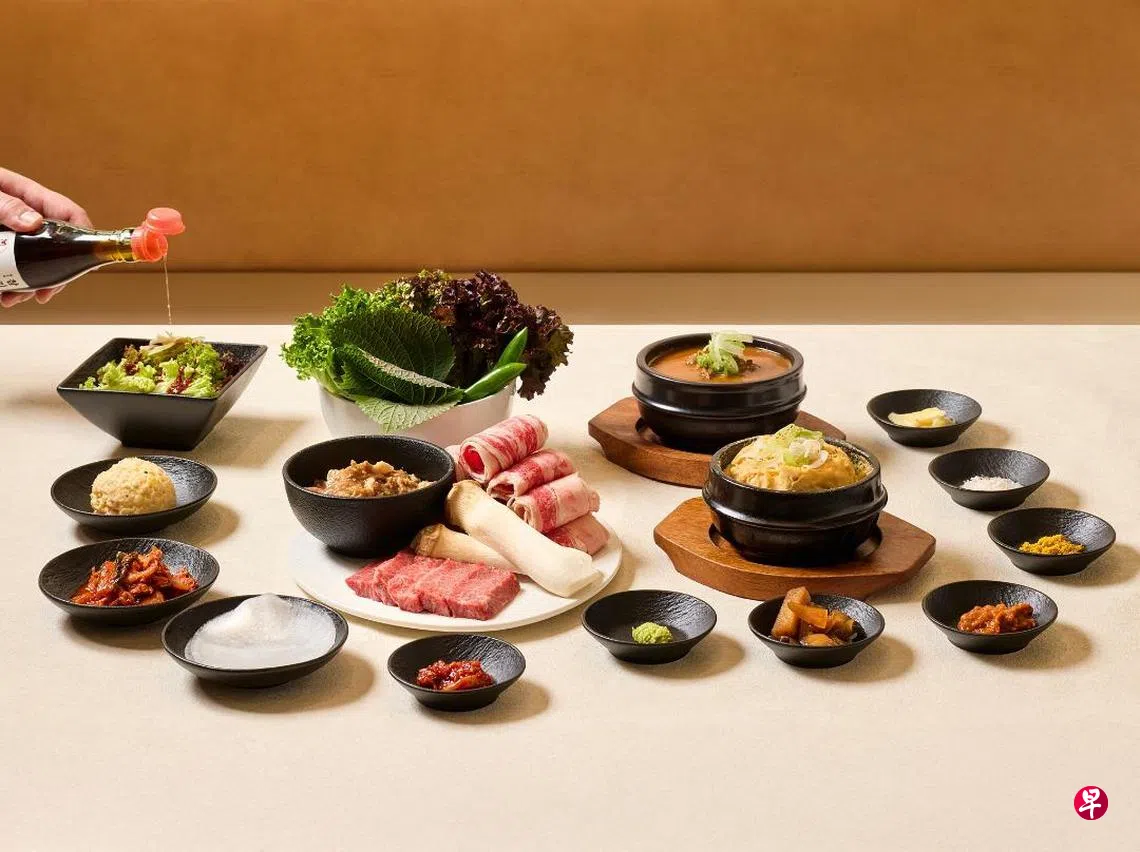 餐馆菜式涵盖从宫廷御膳到街头小吃的多种韩式经典。食客既可坐在炭火烧烤吧台,享受原始火候赋予的烟熏风味,也可选择专人桌边烧烤服务。