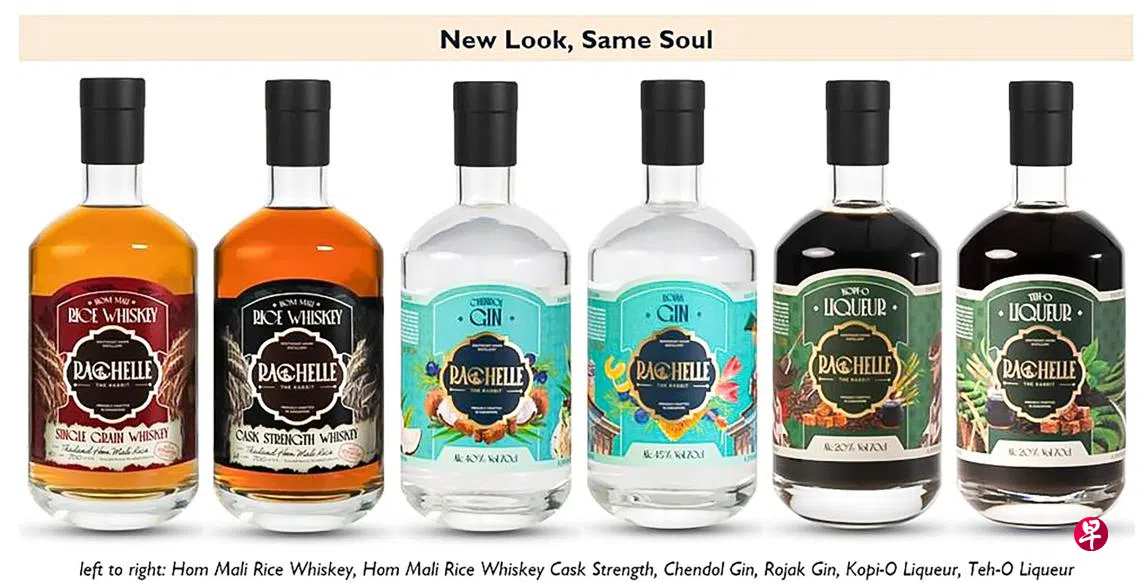 Rachelle The Rabbit Distillery酒品最大特色是融合东南亚本土原料和西方蒸馏技术,采用椰子、蜂蜜和大米等西方烈酒中罕见的原料,是对东南亚丰富文化和植物遗产的致敬。2021年,该厂开创性地推出了新加坡首创的谷物威士忌——泰国茉莉香米威士忌(Hom Mali Rice Whiskey),这款散发浓郁米香,口感干净均衡的酒款很受欢迎,在日本国际酒品大赛中得奖。它联同受小贩美食文化启发的罗惹琴酒(Rojak Gin)和咖啡乌利口酒(Kopi-O Liqueur)在2025年大阪世博会上曝光。该厂酒品已从2024年开始销往日本与中国。