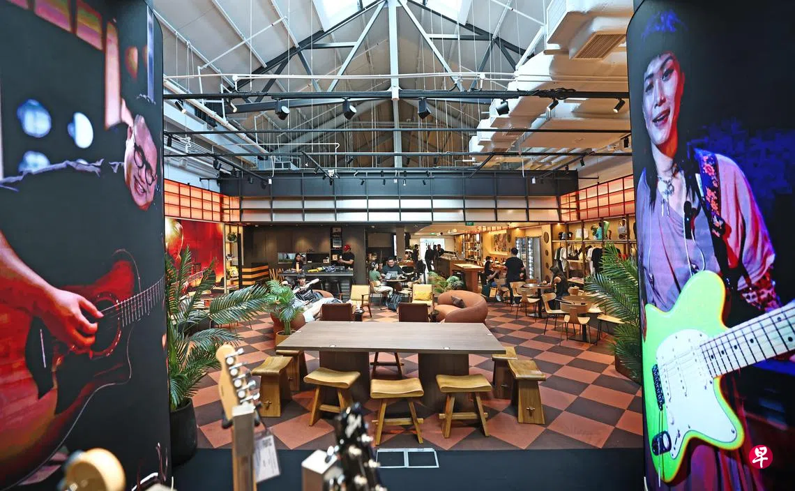 有79年历史的本地乐器店品牌瑞立乐器(Swee Lee),在克拉码头开设概念店,不只卖乐器,还打造黑胶唱片播放区和咖啡馆角落,将音乐、美食和音乐爱好者社群集于一堂。