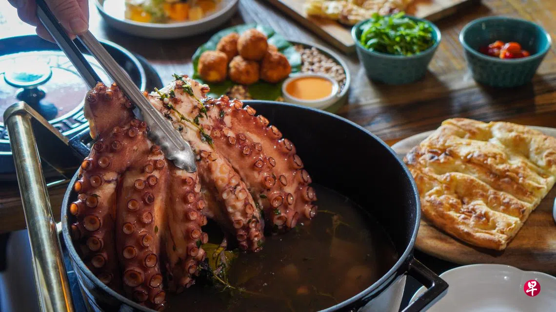 主食有比萨、意大利面等经典意式美味。招牌菜之一是慢煮威尼斯章鱼($22++起)。试吃当天,厨师将整锅端出在桌边现煮现盛,让人满是期待。