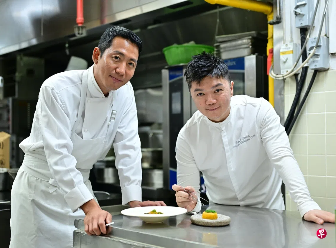 10月6日滨海湾宾乐雅臻选酒店中餐馆鸿桃轩主厨钟腱腾,与泰国Le Du和Nusara餐馆主厨Thitid Tassanakajohn(简称Ton)合作限时活动,中泰风味合璧。