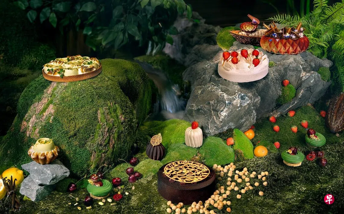 新加坡乌节希尔顿酒店(Hilton Singapore Orchard)大堂休闲吧Ginger.Lily推出“Always in Bloom”系列手工蛋糕,展示五款甜蜜风味。