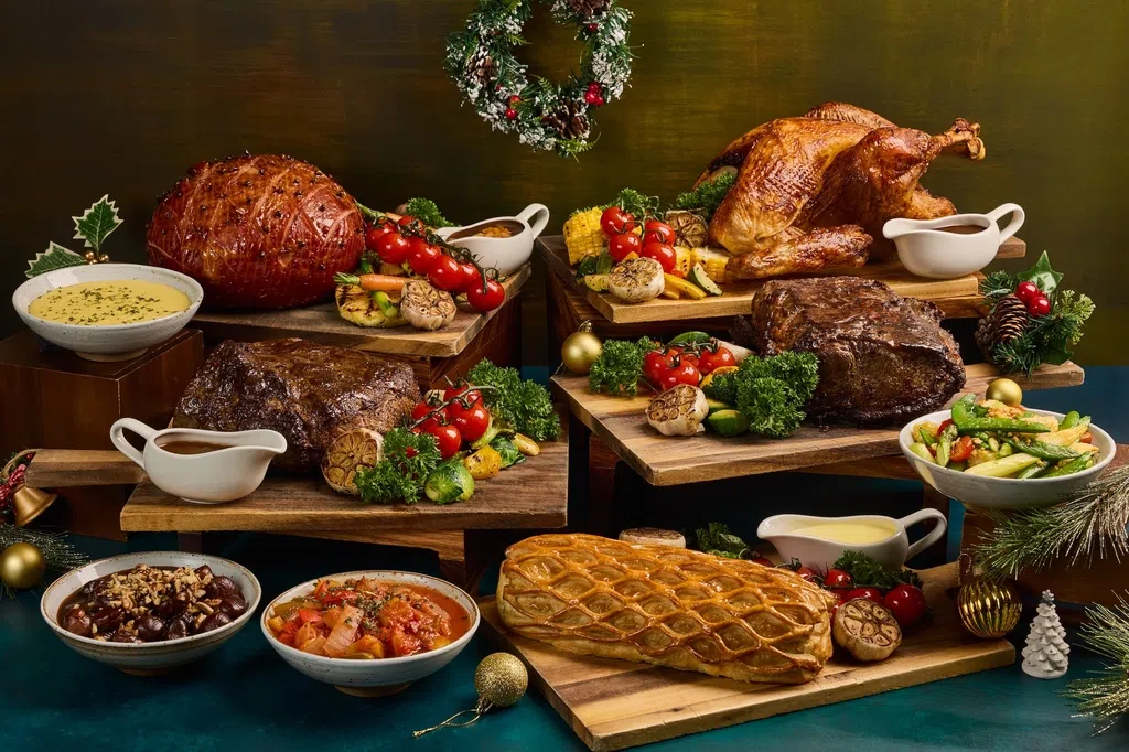 两大“明星”是圣诞烤火鸡搭配自制蔓越莓果酱,以及低温真空慢煮的香料安格斯肋眼牛排配搭自制橙味酱汁。它们都附有香醋烤葡萄、圣诞香料番薯块及抱子甘蓝。