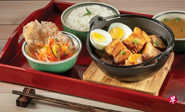 鲜蒸蒸肠粉($18.80++)粉皮薄韧,现点现做。馅料是肉碎、黑木耳和虾肉,吃起来有熟悉的味道。椰汁三层肉套餐($17.80++)和卤肉有异曲同工之处,加入椰汁烹煮,整体味道多几分轻盈。