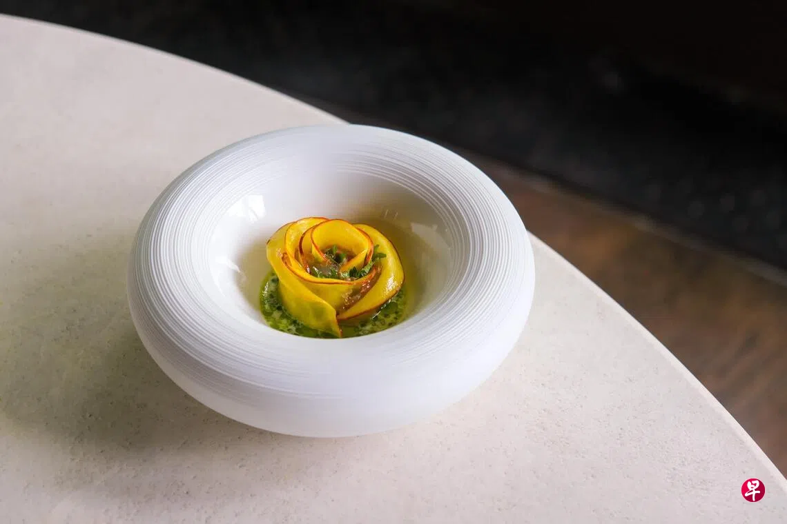餐馆在情人节当天,推出限定五道式情人节菜单,由主厨迈克·威尔逊(Michael Wilson)精心设计,延续餐馆标志性的植物灵感料理理念。