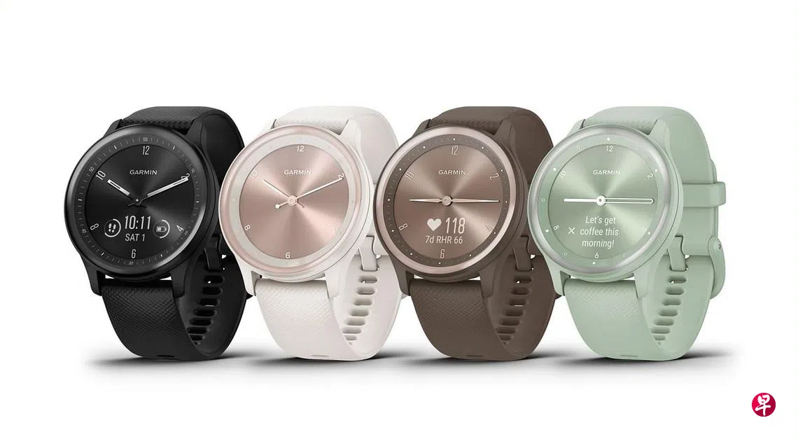 智能表品牌佳明(Garmin)最近推出新Vivomove Sport混合智能手表,有四种颜色。手表以40毫米OLED显示屏配硅胶表带,经典实体指针设计搭载隐藏式触控屏,轻敲表面下半部即可唤醒智能科技,显示各种健康和运动参数。
