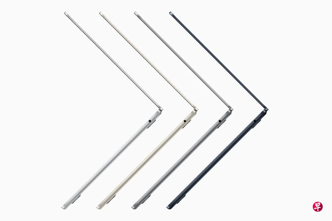 苹果重新设计了MacBook Air,放弃了之前的斜边设计,采用了扁平机身,乍看之下还以为是14英寸MacBook Pro。它厚度为11.3毫米,比上一代薄一些,重量是1.24公斤。现在有一些笔电的重量已低于1公斤,由于MacBook Air使用再循环铝金属,所以不会特别轻,但还不算很重,感觉很有质感。笔电有四种配色,除了深空灰、银色,也新推出午夜色、星光色。