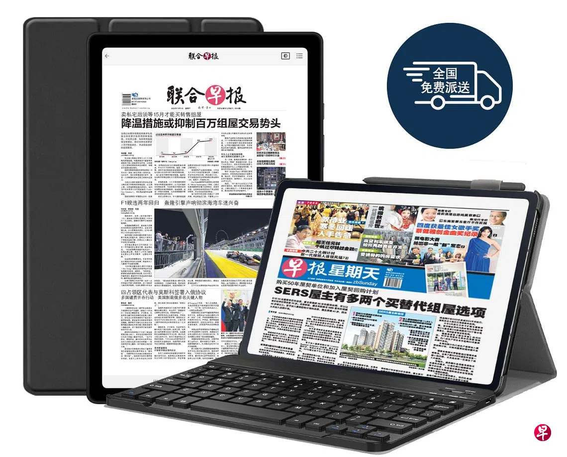 早报平板电子报配套让你拥有最好的阅报体验:轻松用指尖翻阅电子报,随时调节字体大小,欣赏高清图片,享受精致排版。只须连接互联网,平板电脑就会自动下载当天的《联合早报》和《新明日报》电子报,同时保存长达两周的报章存档,也支持离线阅读、剪报收藏和社交媒体分享,适合一家大小使用,为你带来最纯粹的阅报体验。促销活动从11月15日至12月25日。请点击此了解详情。