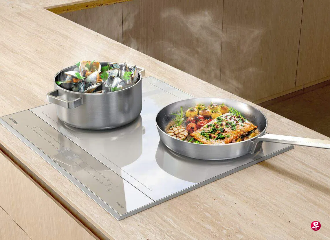 崭新的三星桌面式电磁炉突破一般的黑色设计元素,配搭木色灶面,整体更显明亮干净,这是其特色之一。这是“Bespoke厨房系列”另一件现代智能家电产品。