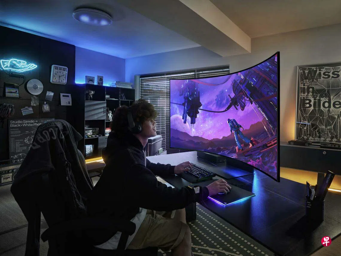 三星推出第二代55英寸Odyssey Ark曲面游戏显示屏,有4K Mini LED超宽显示和165Hz超高刷新率。显示屏依然有四个视频输入接口,但三星将其中一个HDMI接口换成DisplayPort 1.4接口,让用户有更多选择。