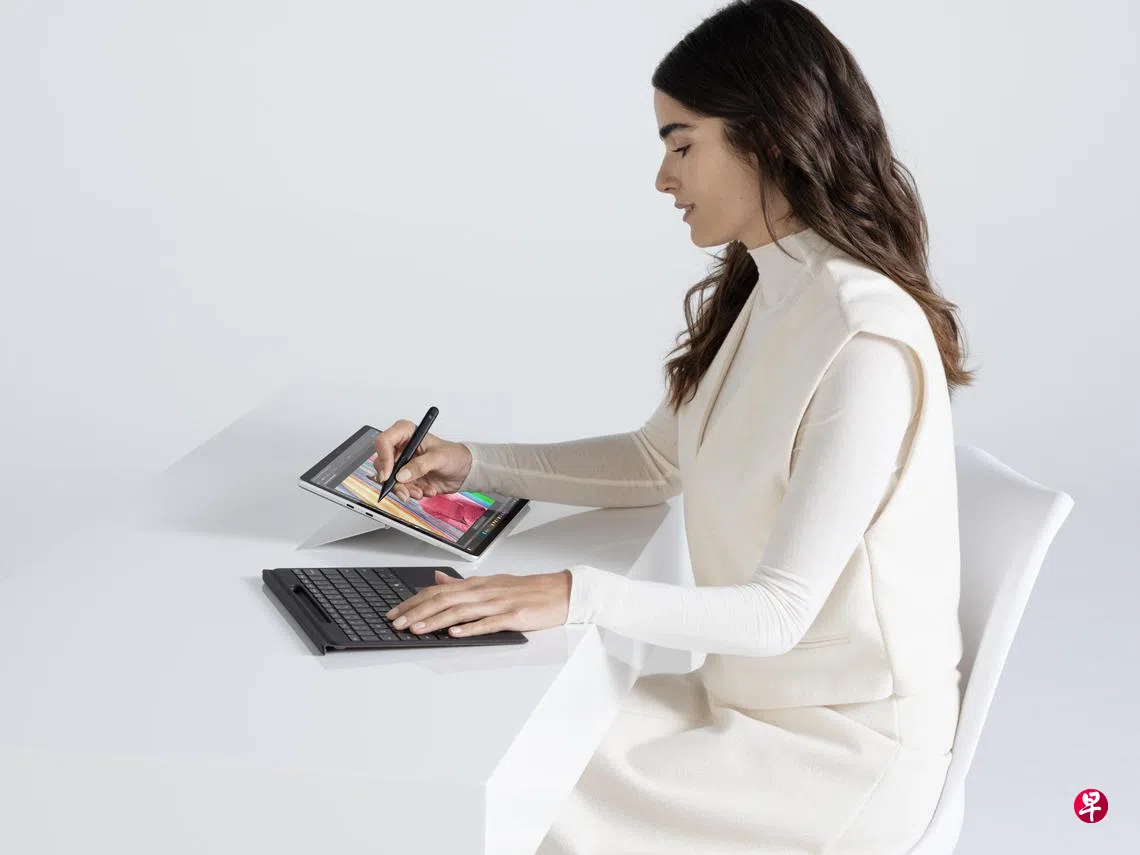 书写笔采用扁平设计,可以收纳在键盘上方的凹槽内。它的握感很好,有不同压感,能画出粗幼不同的线条,使用顺畅。此外,微软也推出新Surface Pro Flex键盘盖,除了可以吸附在机身上,也可拆离并无线连接笔电,让用户打字更灵活,可惜的是这款键盘盖没有在新加坡销售。