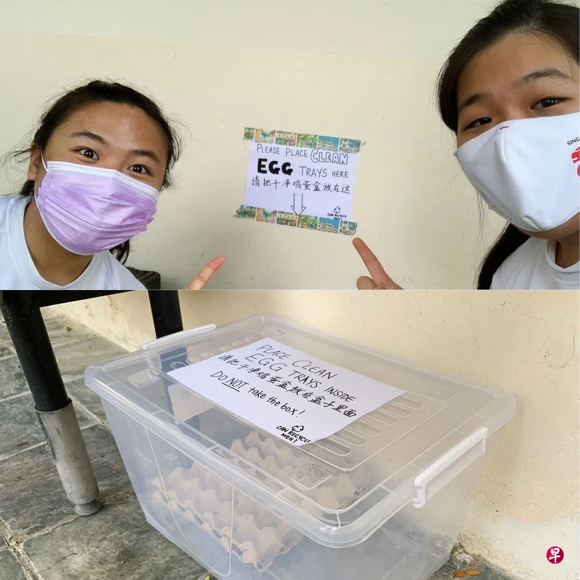 从2021年开始,在华侨中学就读高二的王毓婷和同学锺玖澐、王靖萱、谢思颖和胡美绮,在校园内发起一项名为“Can Recycle Meh”的社区服务项目(Service Learning Project)。这5位女生满怀热忱,积极游说学校食堂的摊主,向他们收集原本丢弃的鸡蛋盒。当初订下的目标是在六个月内回收1000公斤装鸡蛋的纸浆盒。