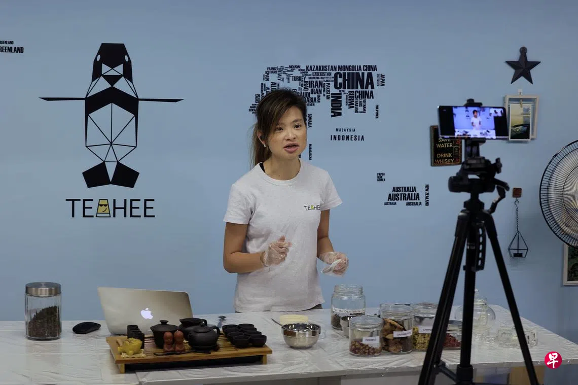 此外,Teahee SG与本地学府合作,配合本地小学与中学的母语双周而主办茶品配置线上活动。潘万莉透露自己另外还开设“字厨”网络华文补习中心,当中除了网上教学,也会通过泡泡茶制作等活动,教导日常华语会话。