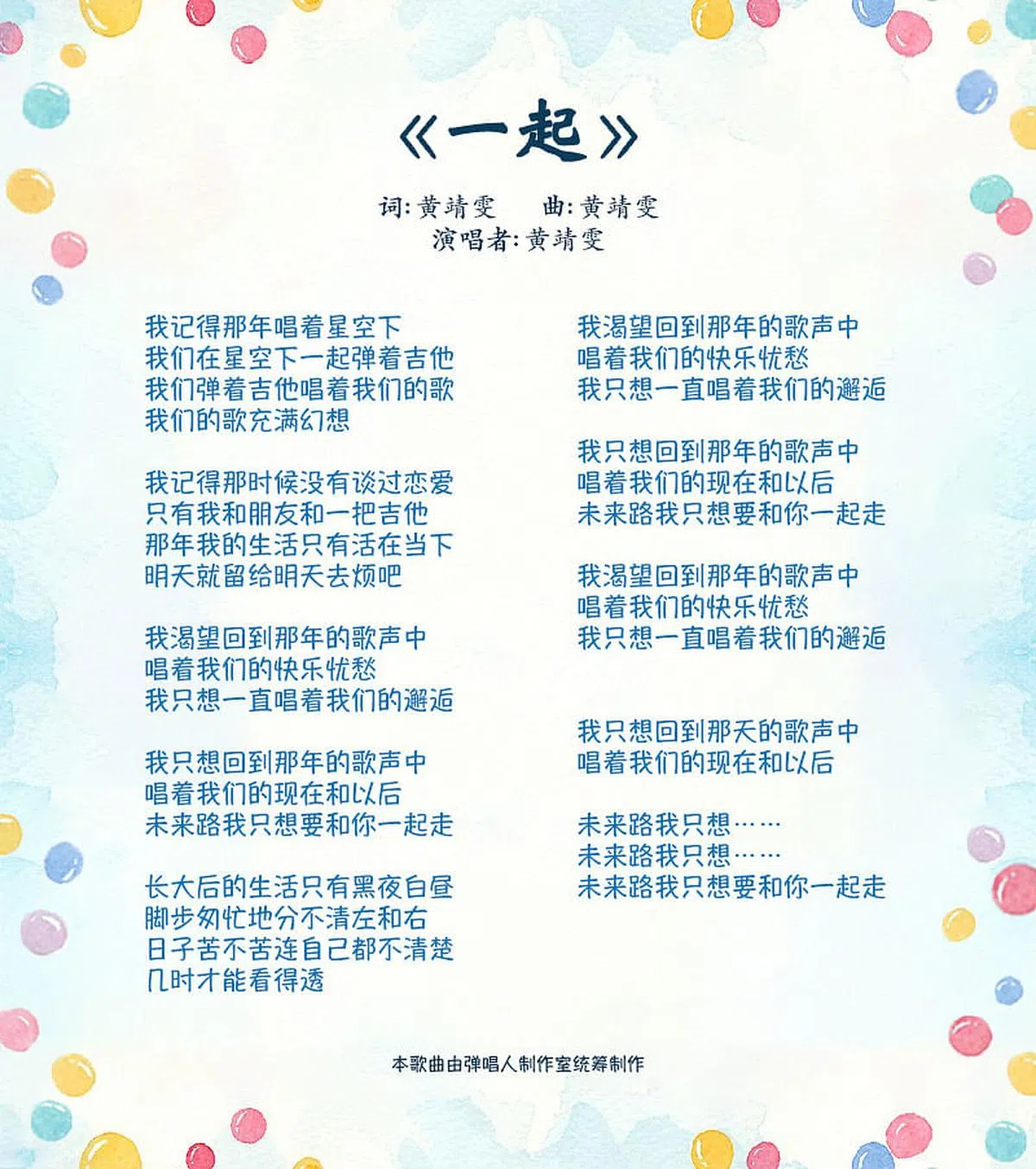 新空下2021创作合辑:《一起》发布/2022年4月26日 21:24小标准中大《一起》词曲是由新加坡艺术学院的黄靖雯所创作。 本歌曲由弹唱人制作室统筹制作。所有入选作品的词曲版权归属推广华文学习委员会。浏览新空下专题页面,就可以知道更多相关信息! 新空下全国学生新谣歌唱及创作比赛新谣上一篇新空下2021创作合辑:《愿你》下一篇【取火】死神