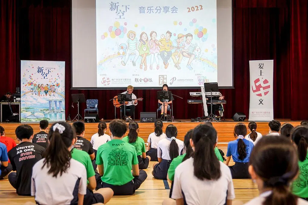 弹唱人“新声代”歌手张嘉思和黄铃贻的悦耳歌声与风趣互动也让分享会生色不少。莱佛士女中罗新迪(13岁)表示对歌手的演出印象深刻,希望未来有机会再参加分享会。