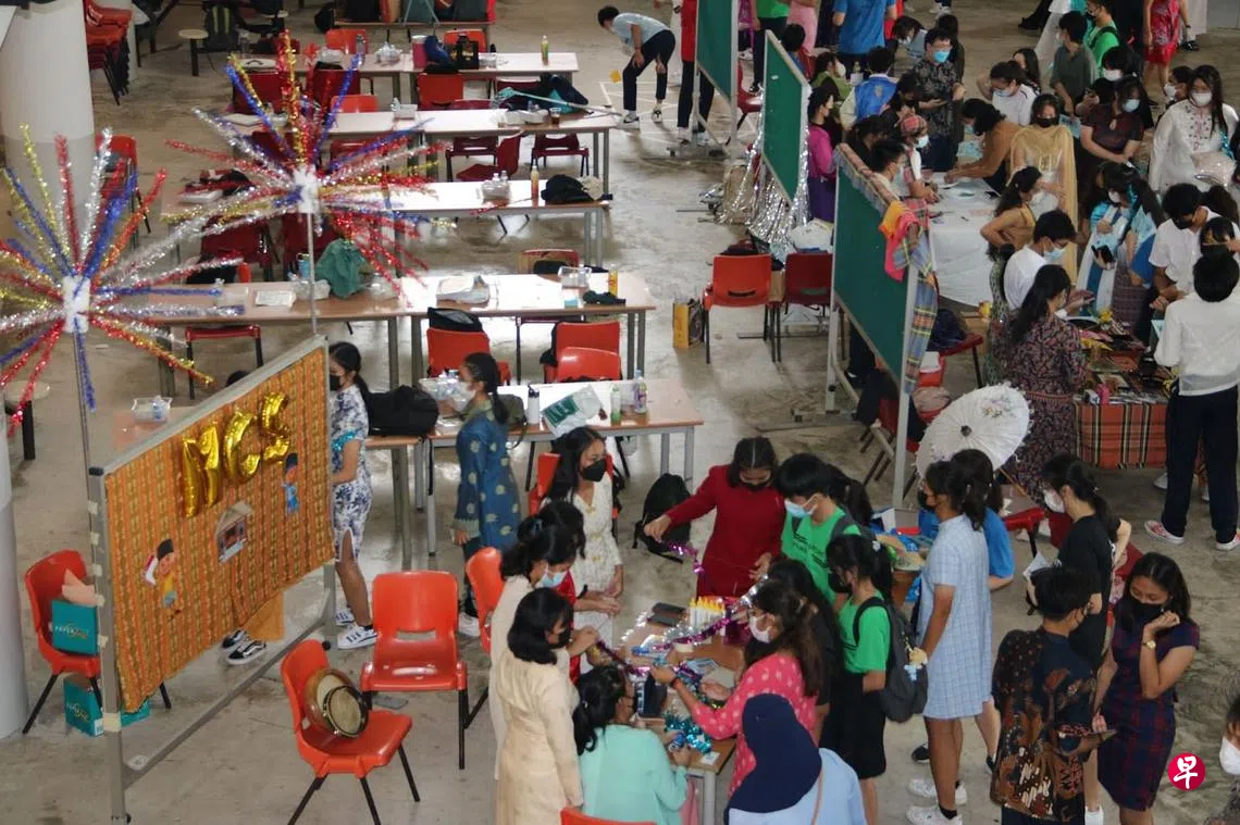 裕驱初院的庆祝活动还包括来自不同种族以及国家的学生在校内设置小摊位,通过互动的方式让师生体验不同的传统文化活动。例如,华族文化社学生向各种族的学生介绍筷子和书法文化,同时也给“光顾”摊位的学生提供玩筷子游戏和写书法的机会。