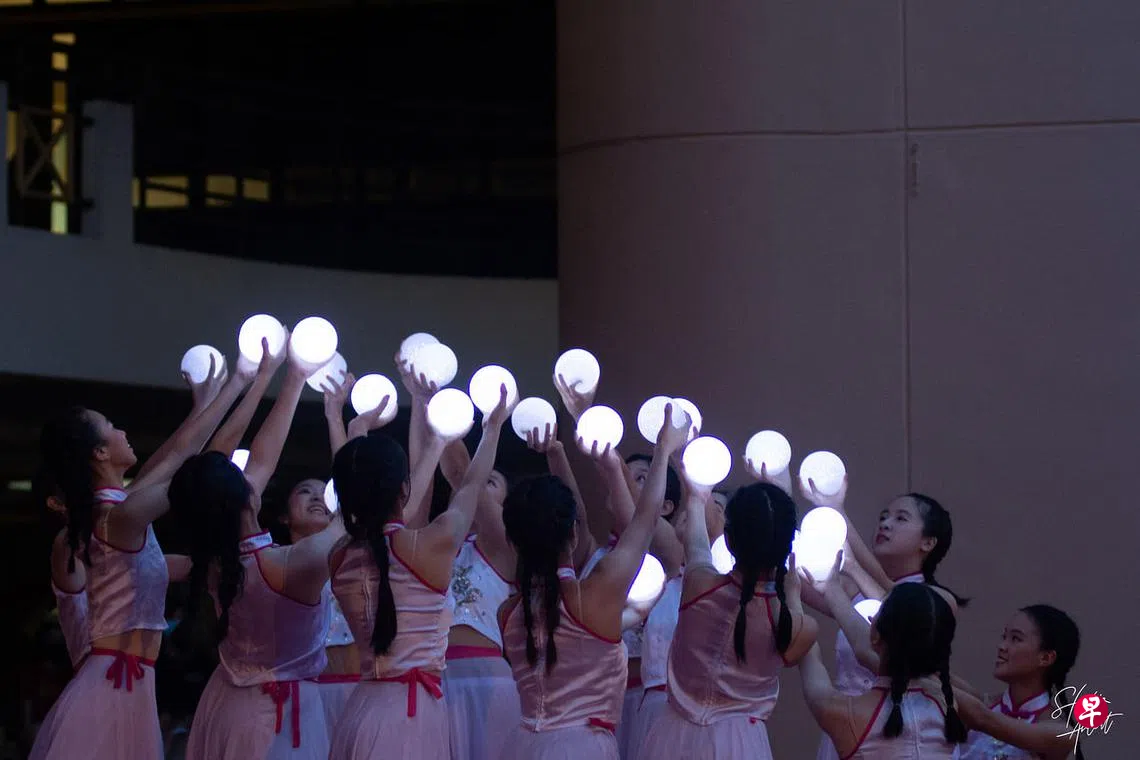 在华侨中学,中秋晚会向来是备受瞩目的传统节庆活动。过去两年囿于疫情,这个极为隆重的大型活动被迁移到了线上,观看人数虽多,但不可否认的还是缺乏实体活动喜气洋洋的参与感与热闹喧腾的盛况。随着防疫措施的松绑,中秋晚会终于在8月31日强势回归,点亮了校园的夜空。