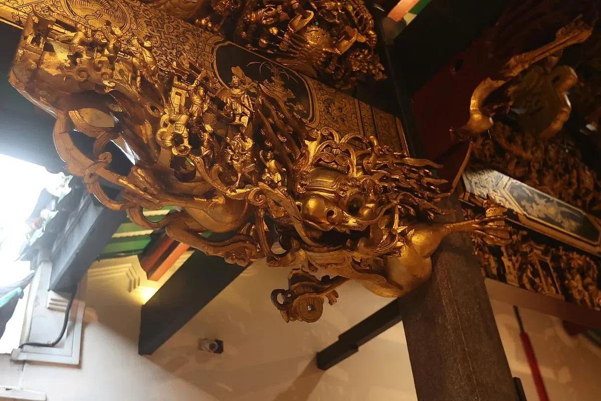 坐落在新加坡中央商业区的粤海清庙,在熙熙攘攘的都市生活中,是一种独特的存在。它的建筑艺术和周围钢筋水泥的高楼形成了鲜明的对比,嵌瓷工艺和木雕艺术尤其出色,也成为了陈冠帆的研究核心。