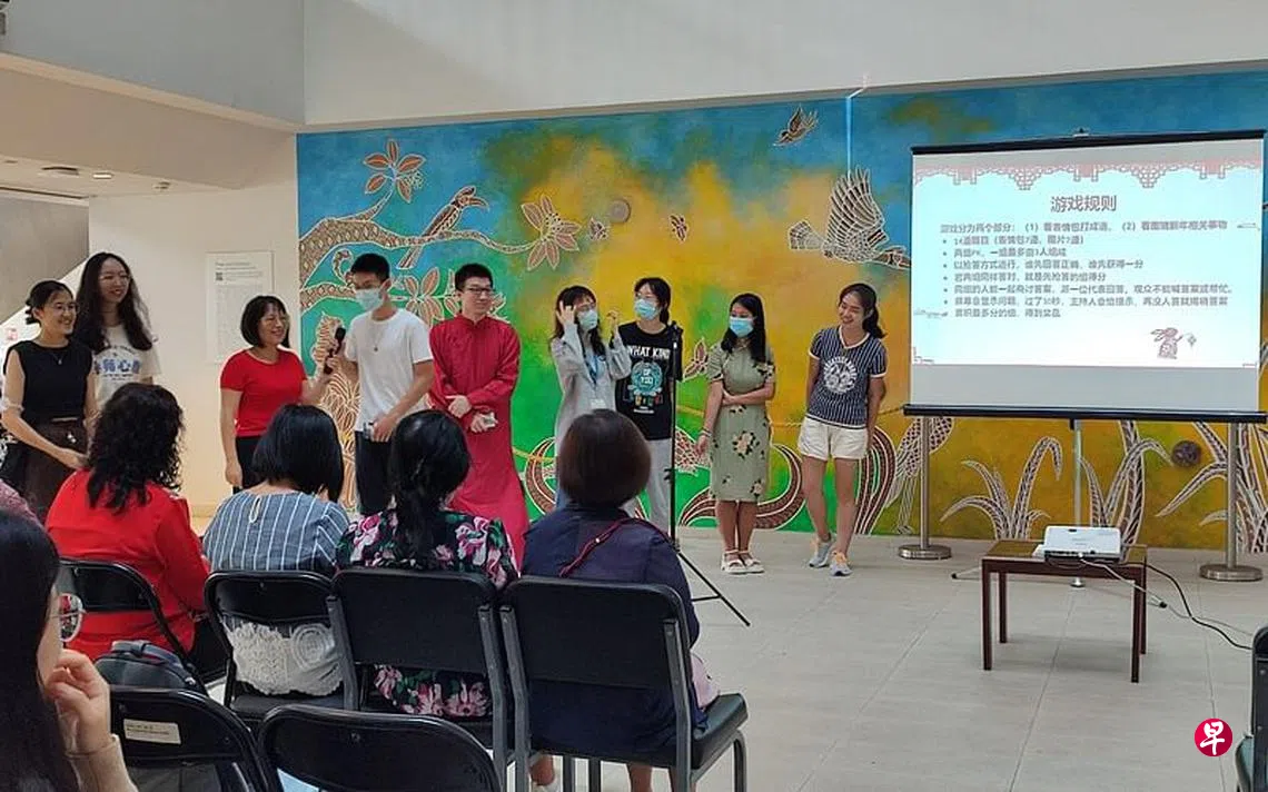 致辞后,团拜节目如火如荼地展开了。中文系同学会精心制作了短视频,主题为“寻找年味儿”。1月中旬,同学会的执委们特地到牛车水一趟,捕捉那里的风景、装饰、年货市场热闹的气氛。除了到牛车水拍摄,执委们还进行了圆桌讨论,聊聊他们过去几年是怎么过年的,新年的意义是什么,今年首个开放以后的新年,他们准备做些什么活动。视频以Vlog的形式呈现,富有知识性又充满趣味,再加上同学会剪辑师的妙手,将背景音乐和抓人眼球的特效融合得天衣无缝,其中不少的梗也逗得大家开怀大笑。