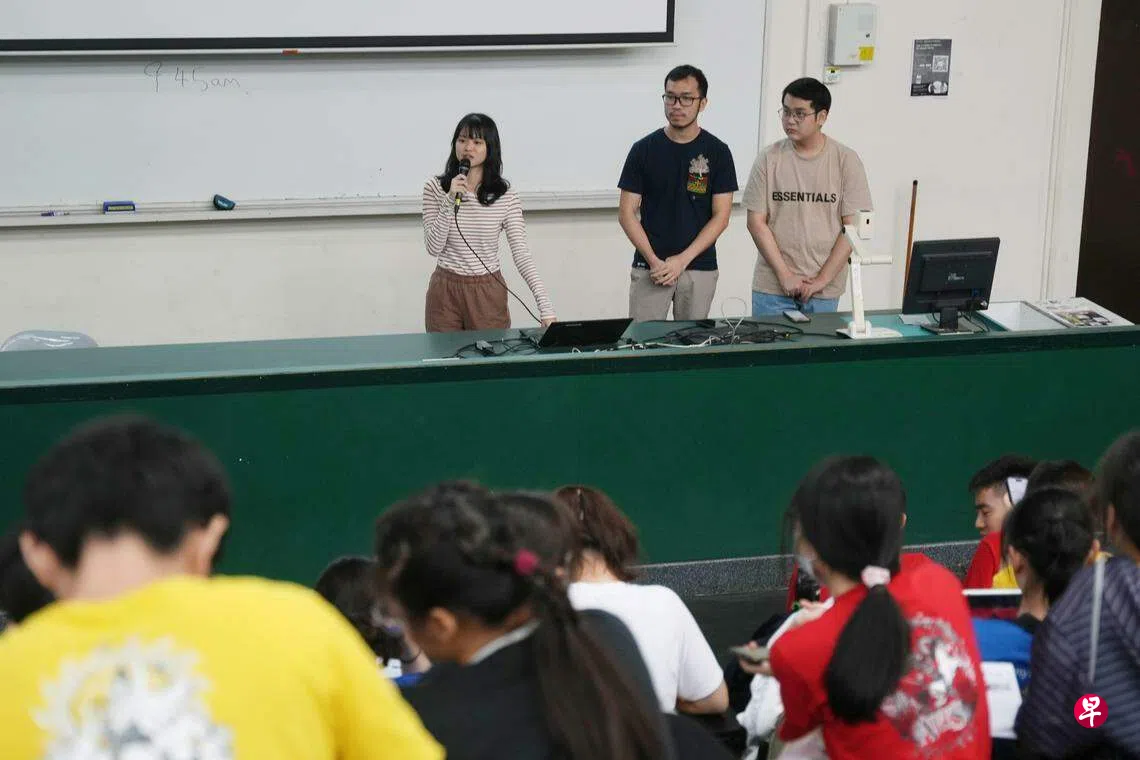 与一般分享会不同,主讲者并没有用填鸭式的幻灯片给学生灌输超量信息,而是通过一段段小故事打动了在场的学生。
