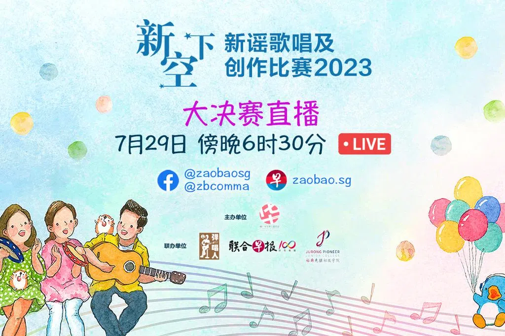 “新空下”2023得奖名单2023年“新空下”新谣歌唱及创作比赛已圆满结束!得奖名单已经出炉,恭喜所有得奖者!点击重温精彩大决赛。 “新空下”新谣歌唱及创作比赛由推广华文学习委员会主办,弹唱人制作室、《联合早报》和裕廊先驱初级学院联办。想了解更多详情,可浏览“新空下”专题页面。 延伸阅读 华侨中学学生唱响“新空下”大决赛 夺四组别三项冠军 2023“新空下”新谣歌唱及创作比赛(大决赛)直播 新空下推广华文学习委员会新谣上一篇2023“新空下”新谣歌唱及创作比赛(大决赛)直播下一篇跨系修法证科学 学破案还原真相购买此文章
