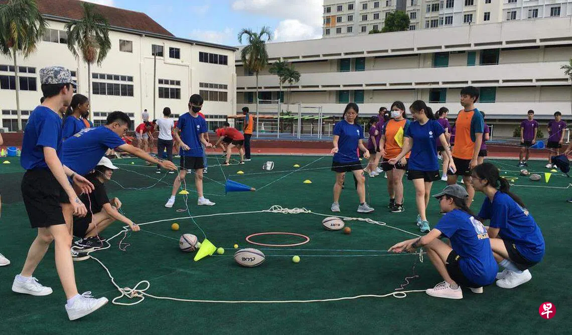 户外运动俱乐部为学校的四个分院分别设计了富代表性元素的16项活动。学生以班级为一个团队,共同携手参加其中四个活动。这些活动内容丰富且具创意,不仅考验学生的肢体协调能力,更需要学生运用集体智慧来完成活动。其中最具特色的是要蒙上双眼参加的“逃脱森林”(Escape the forest),从“老鹰捉小鸡”中汲取灵感的“屠龙者”(Dragon slayer),需要学生拼图的“智慧碎片”(Fragments of wisdom),以及考验学生双手平衡度的“蛛网的审判”(Trial of Arachne)。