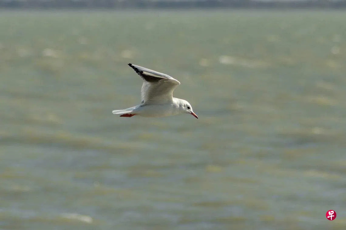 小鱼抬头看着小鸟。