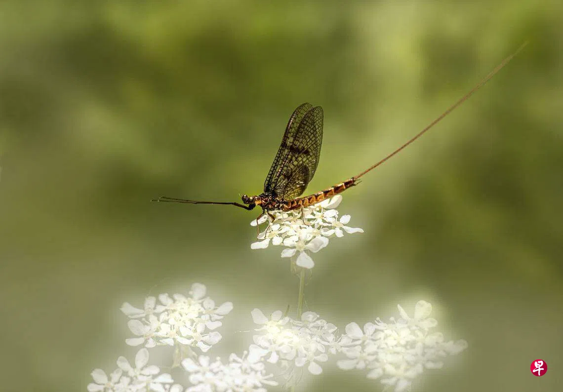 蜉蝣在出生的第一天就遇见了一只活了近百年的鹤。