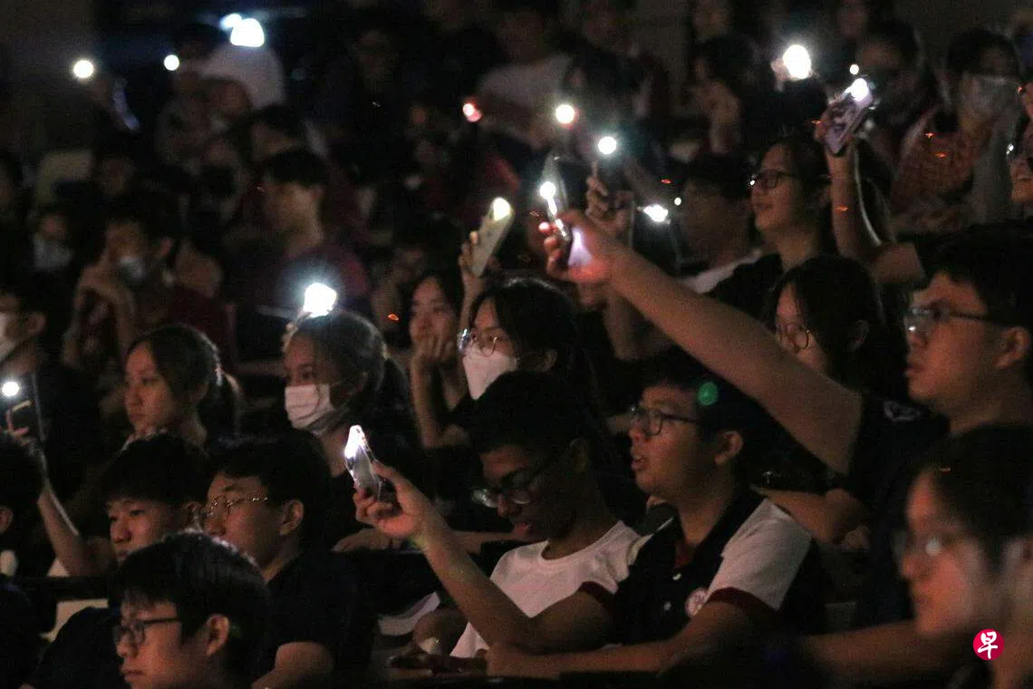 下半场,本地歌手饶梓杰和范平庚一出场,他们以嘹亮的歌声和稳健的台风,轰动全场。两位歌手演唱多首华语流行歌曲。现场学生一见到他们,难掩兴奋之情,不仅拿出手机拍照,同时还开启手机的照明功能,跟着旋律摆动与歌唱。淡滨尼美廉初级学院院长冼健豪也全程观赏表演,与学生共乐。
