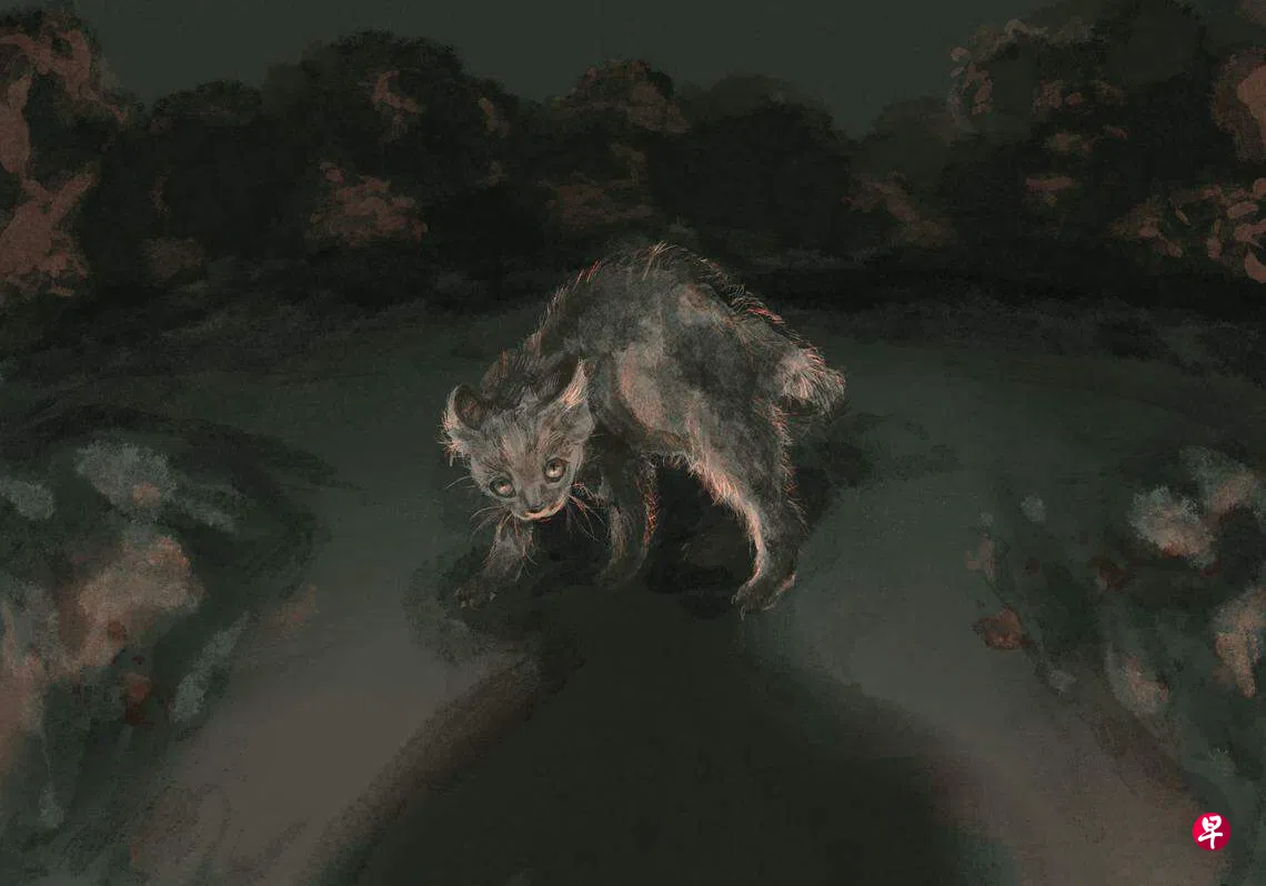 “哧!哧!”我身边另一个草丛里传来了像是在铲草地的声响。流浪猫显然也听到了,霍地停下咀嚼的动作,弓起身子,一副随时要逃跑的模样。空气中飘着一丝血腥味,淡到几乎无法捕捉到。由于我高度紧张,让我对周遭的一切都草木皆兵,那一抹微乎其微的血腥味,不断刺激着我的神经。