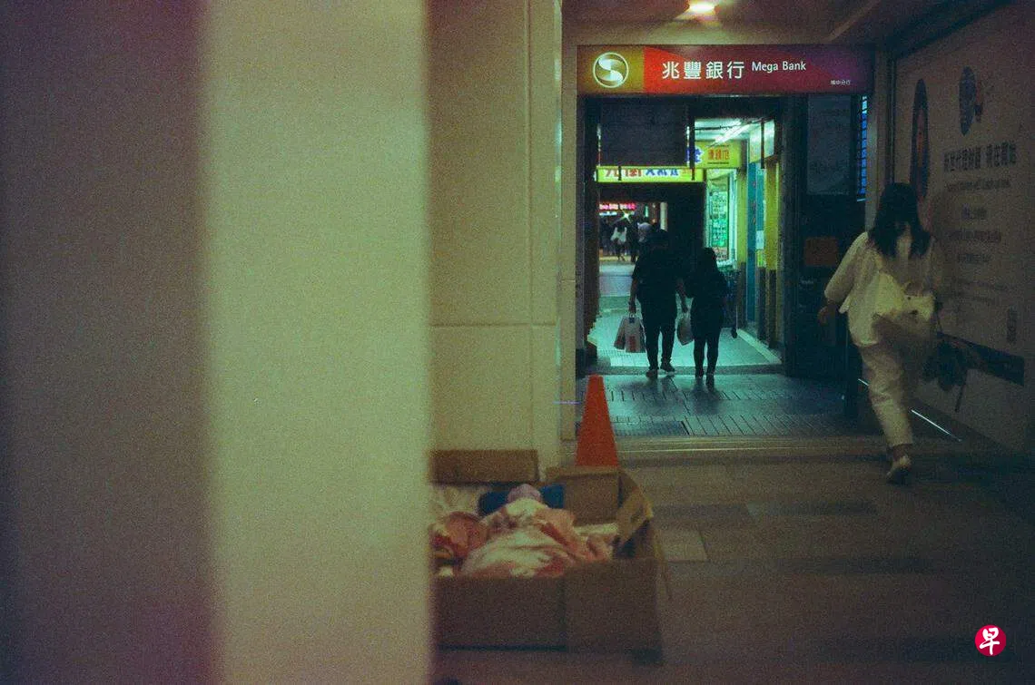 在无人打扰的洞穴里,我穿起了前些日子买的不合身的乳白连衣裙当睡衣,只有在外出时才套上一件T恤。比如此刻我正拿着一块不怎么好吃的可丽饼,正要乘电梯回到台北栈旅店,却看见光南大批发门口处两个男人分别躺在特大号的纸箱里沉沉睡去的模样。我后退几步,躲在墙后,拿起了相机默默按下了快门。