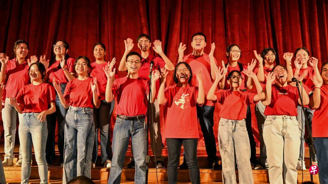 最后,淡美初院院长冼建豪带领全校师生大合唱,一起唱响新年歌曲,将庆祝会推向高潮。学生们随着歌曲的旋律摆动身子,沉浸在新年的气氛中。
