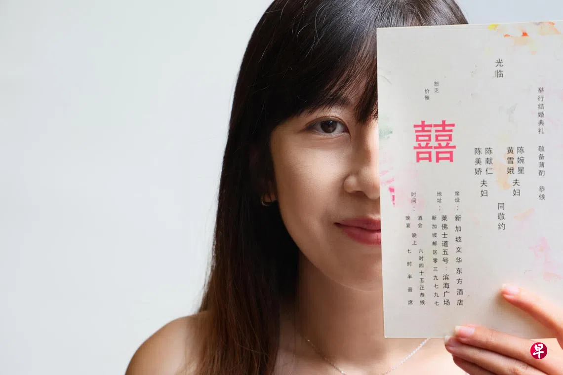 在喜帖选择方面,苏佩珊认为,实体喜帖是值得保留的传统,也具有纪念价值。她说,新人的家长大多会倾向实体婚宴邀请函,也较喜欢传统的红色喜帖,年轻人则偏向较具时尚感的设计与颜色。有些准新人会选择折中方法,如印制实体喜帖给长辈,而给身边同辈发电子喜帖。不过她提醒:“印制实体喜帖的价格是以订购越多越便宜。准新人不妨跟家长商量喜帖的颜色,如以不同色调的红色如淡红色或栗红色取代大红色。”