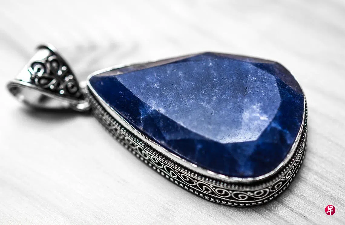 蓝宝石项链掉落在地上,碎片飞了出去。
