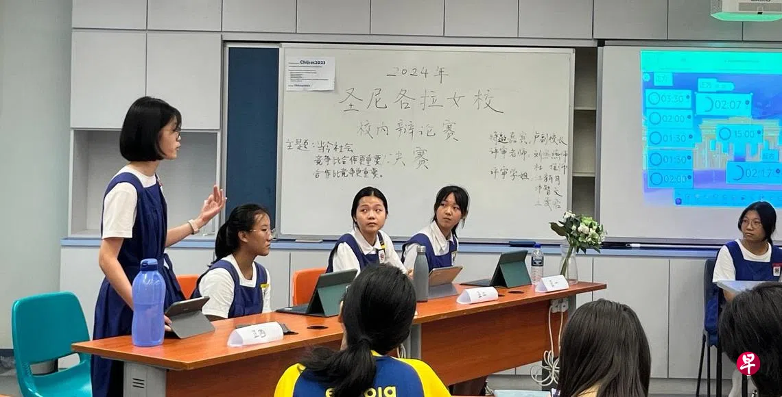 配合母语双周,圣尼各拉女校中学部迎来一年一度的华语辩论比赛,于3月6日举行初赛,26日举办决赛。自2016年举办第一届比赛起,华语辩论比赛延续至今,正式在2024年迎来第九届。这项比赛从筹办到正式比赛,都由学生主委一手包办。
