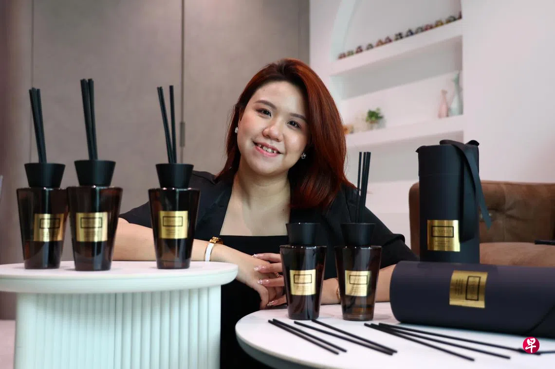 31岁的室内设计师陈美君在为客户设计新家时,想到自己素来喜欢香薰的味道,也希望用气味为人们打造归属感。大约一年多前,她通过亲身调试,开发出多种香型的藤条香薰(reed diffuser),提升居家品质。