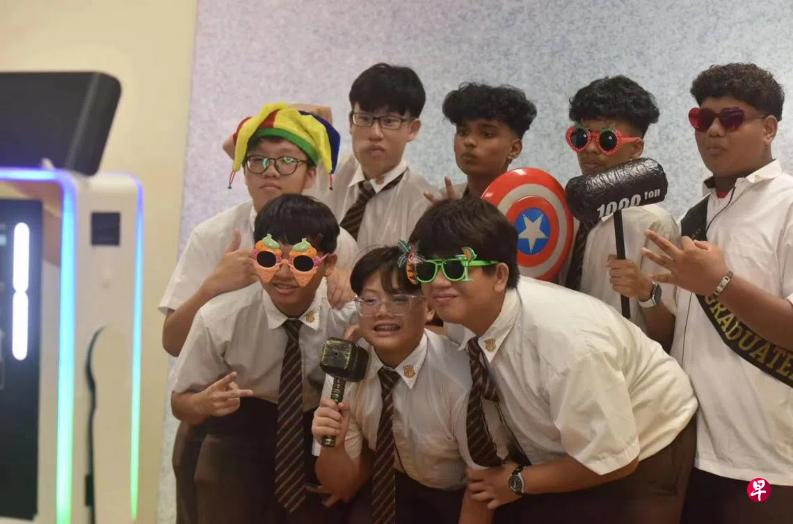 典礼已落下帷幕,毕业生仍意犹未尽,纷纷在氛围感十足的拍照亭合影留念。毕业生江弈博说:“我在惠厉不仅学到了丰富的知识,还与老师同学共度了难忘的时光。即将毕业离开母校,我感到非常不舍。”