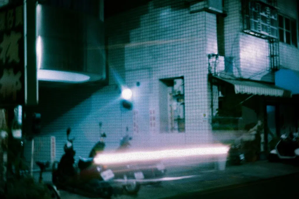 许多这些夜晚都和他在寻找适合用相机捕捉的画面。那晚我让他陪我走路,在水沟前看见一堆被踩扁的烟蒂。他说可以想象一个人在这里抽上一整包烟的样子。
